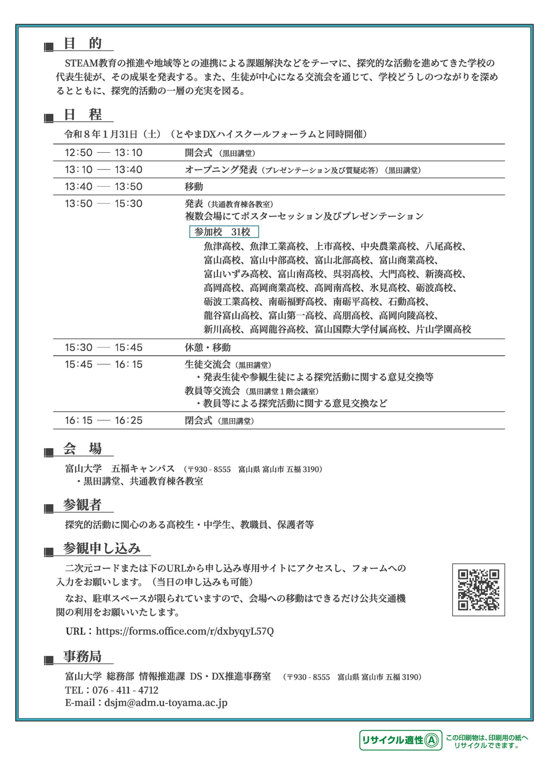 【イベント】R7年度とやま探究フォーラム ~既知と未知をつなぐ架け橋~ (1/31開催)